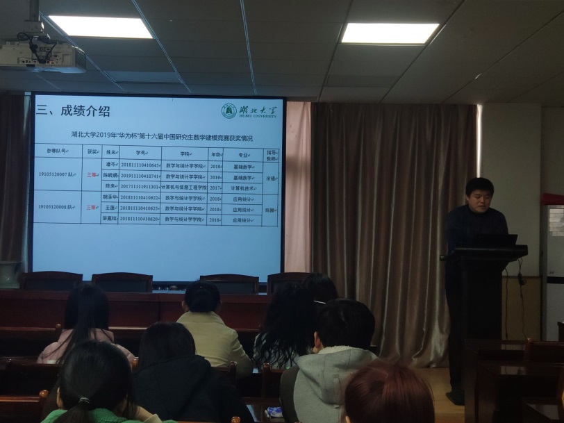 报告会伊始,陆伟书记就全国老员工数学建模比赛和全国研究生数学建模比赛和公司研究生所取得的成绩进行简单的介绍,鼓励同学们积极参与。