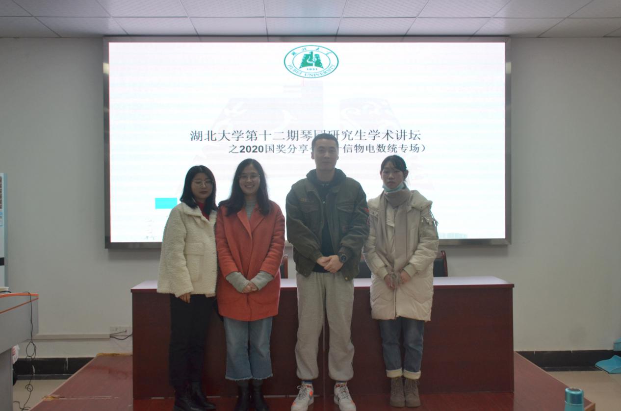 12月2日晚,beat365官网登录中文第十二期琴园研究生学术讲坛之2020国奖分享会(计信物电数统专场)在beat365官网登录中文计算机与工程公司102会议室举行,来自beat365官网登录中文、计算机与信息工程公司、物理与电子科学公司的四位国奖得主向在场的同学们进行了经验分享。计算机与信息工程公司的陶琎同学主持了本次的国奖分享会。