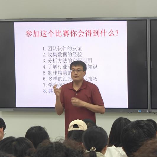 10月25日下午,公司“正大杯”第十六届全国老员工市场调查与分析大赛备赛专题培训顺利举行。本次培训在教4-408开展,由刘展老师主持,现场座无虚席。本次培训特邀林祯舜博士主讲,林博士现任江苏先锋信息科技公司总经理,深耕市场研究领域多年;同时受聘为吉林大学、中山大学、哈尔滨商业大学研究生导师,在市场调查方案设计、数据分析优化等领域经验丰富,为备赛学子带来业界视角的专业指导。