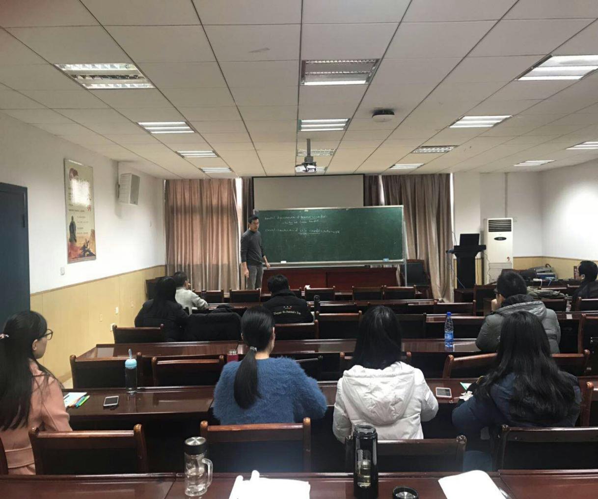 本次报告中,孙俊老师讨论了Kahler流形中全纯子流形的变分特征以及最近在Sasaki流形中不变子流形问题上的进展。在报告结束后与师生展开了讨论,解答了师生提出的很多问题,听了孙俊副教授的报告,全体师生获益颇多,受益匪浅。
