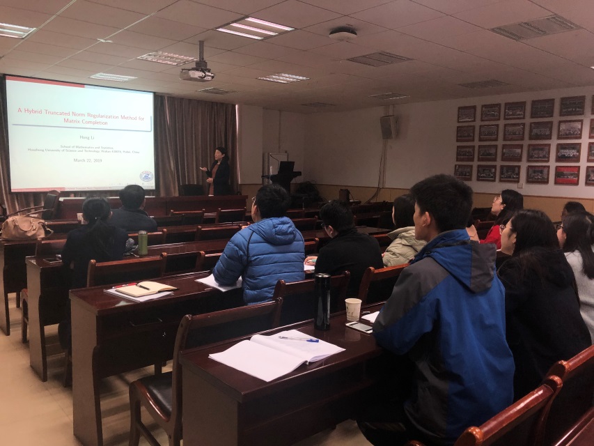 2019年3月22日,华中科技大学李红教授和澳门科技大学钱涛教授应邀来访公司,在院201报告厅为相关师生分别做了题为《A Hybrid Truncated Norm Regularization Method for Matrix Completion》和《Sparse Representation In Reproducing Kernel Hilbert Spaces》的学术报告。