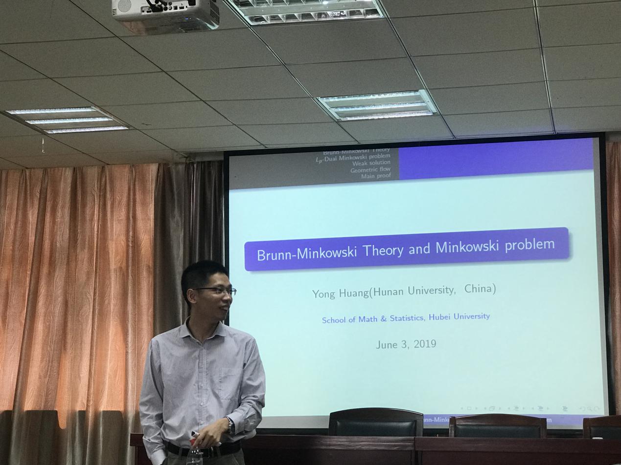 2019年6月3日上午,湖南大学黄勇教授应邀来访公司,并为相关专业的教师与研究生做了题为“Brunn一Minkowski Theory and Minkowski Problem”的学术报告。