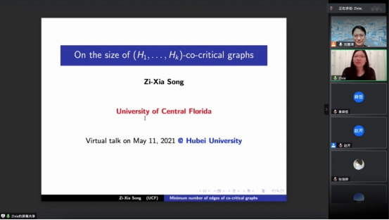 2021年5月11日上午,美国中弗罗里达大学宋梓霞教授应公司刘慧清教授邀请,为公司师生作线上学术报告,报告通过腾讯会议在线举行。会议由刘慧清教授主持,来自运筹学与控制论专业的教师、博士和硕士研究生参与了报告的听取、讨论。