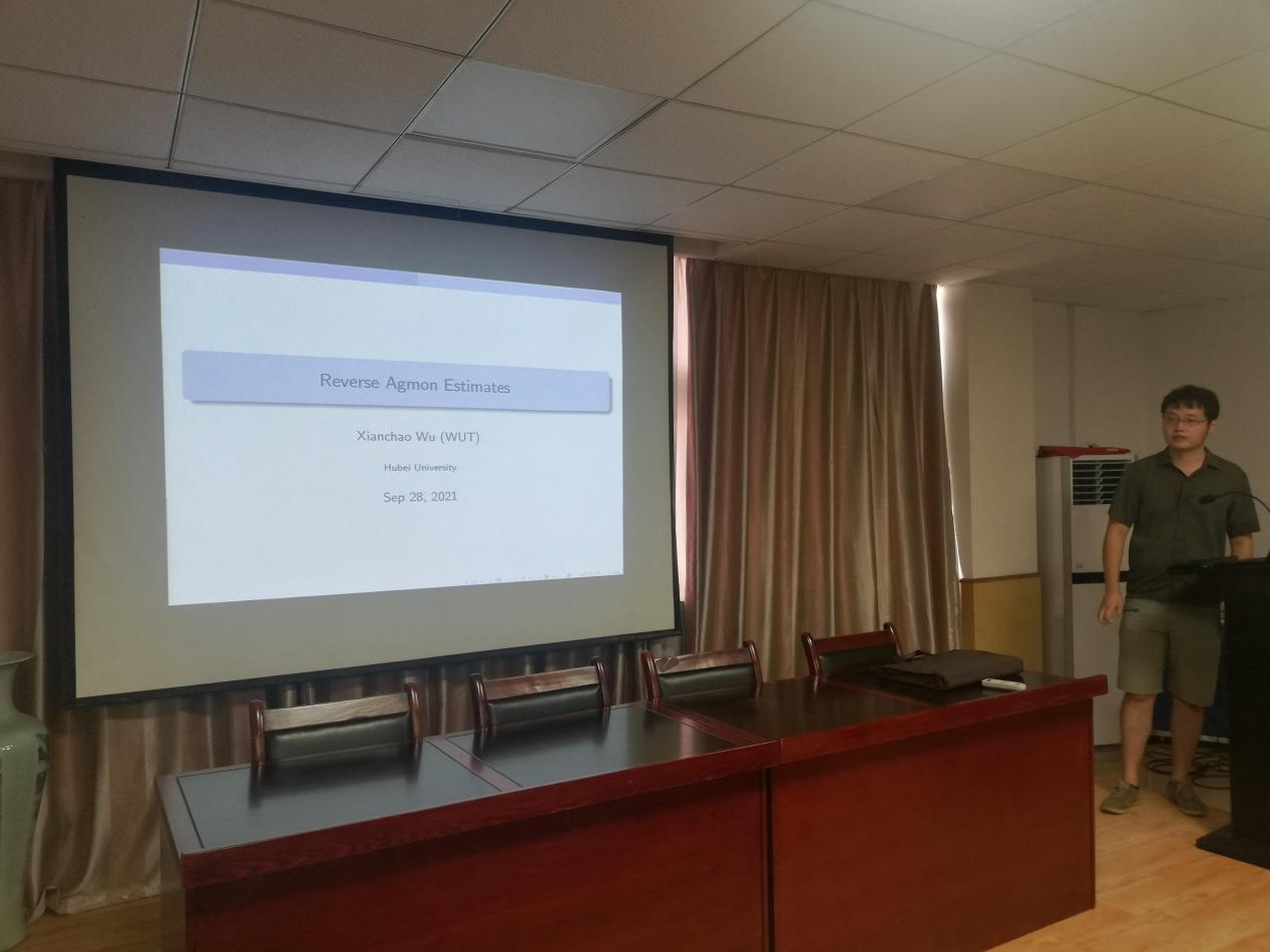 2021年9月28日上午,武汉理工大学吴先超副教授应公司陈立老师邀请,在公司201为几何团队师生作了题为“Reverse Agmon Estimates”的学术报告。