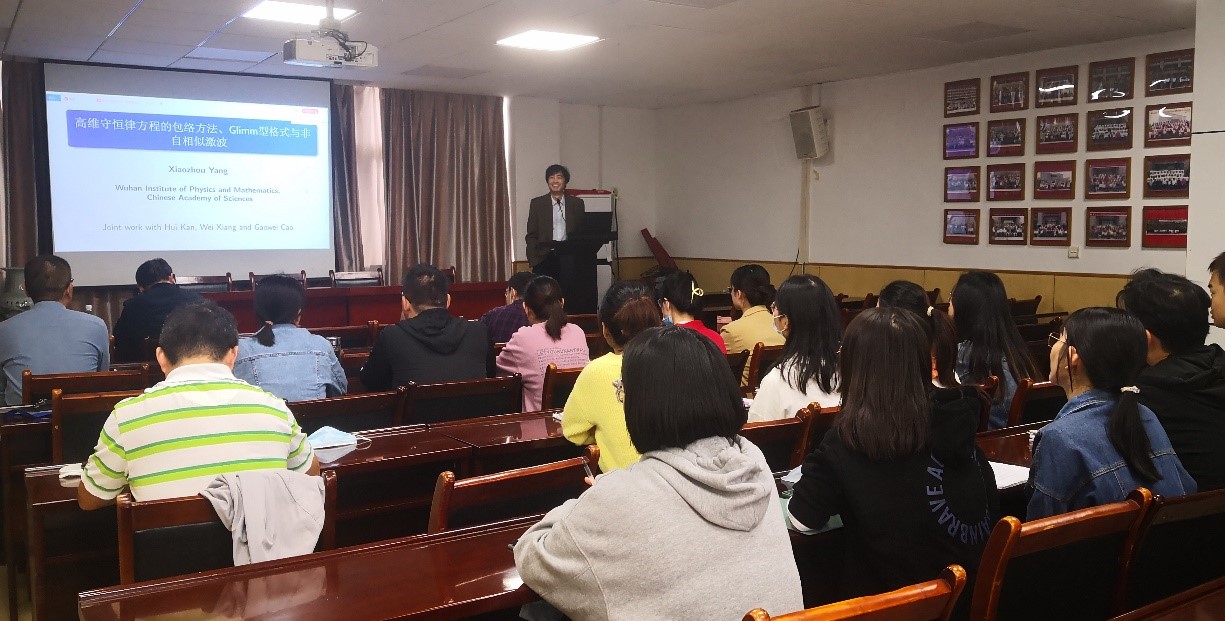 2021年10月8日下午,中科院精密测量研究院(原中科院武汉物理与数学研究所)数学部主任、博士生导师杨小舟研究员应邀在beat365官网登录中文201会议室为公司偏微分方程方向相关师生作了题为“二维守恒律方程的包络方法、Glimm型格式与非自相似激波”的学术报告。