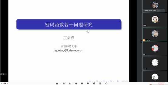 2021年10月11日上午,南京师范大学王启春教授应邀为公司师生于腾讯会议作了题为《密码函数若干问题研究》的学术报告。