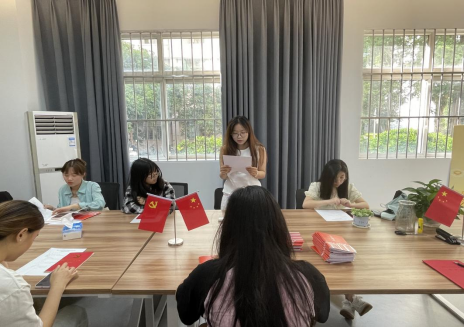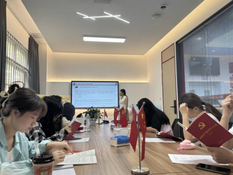 本次活动分为通报到会情况、奏国歌、重温入党誓词、交纳党费、理论学习、青锋成员分享以及支部书记总结七个部分。会上,全体党员同志一起高唱国歌,主持人孙怡同志带领全体党员重温入党誓词,并学习了习近平总书记五四青年节对全国广大青年寄语精神,引导支部党员争做有理想、敢担当、能吃苦、肯奋斗的新时代好青年,在推进强国建设、民族复兴伟业中展现青春作为、彰显青春风采、贡献青春力量,奋力书写为中国式现代化挺膺担当的青春篇章。随后孙怡带领全体党员一起学习《中国共产党纪律处分条例》,引导党员反思自己的不足并树立正确的思想观、政治观、世界观。