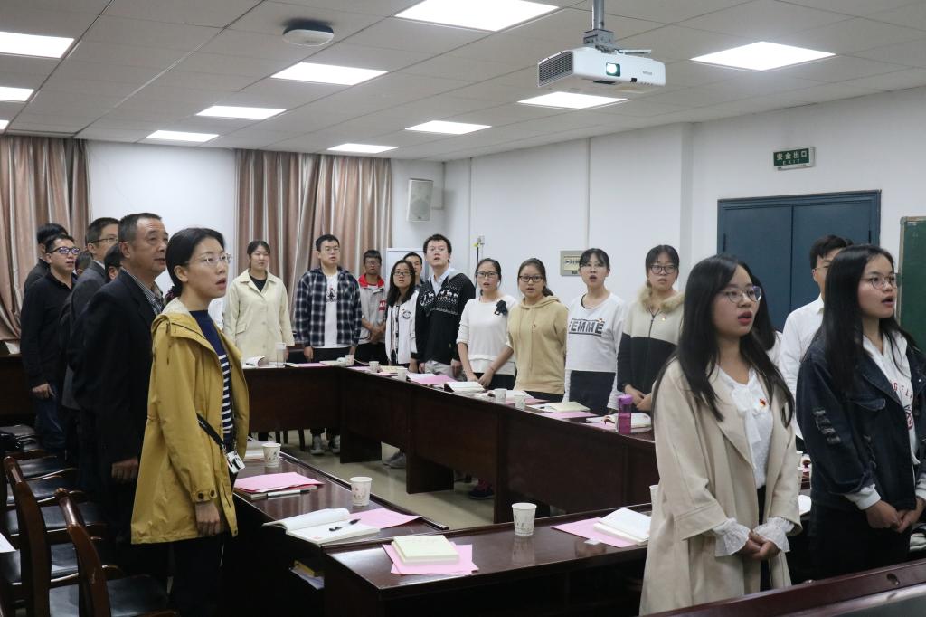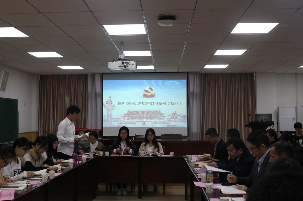 会议伊始,两个支部的组织委员通报了到会情况和10月份党费收缴情况;随后,支部成员集体奏唱国歌,beat365官网登录中文本科生第二党支部宣传委员徐文修带领全体党员重温入党誓词;接着,员工工作部(处)、武装部、校团委联合党支部宣传委员张珣带大家领学《中国共产党支部工作条例(试行)》第六章内容,视频学习《中国共产党第十九届中央委员会第四次全体会议公报》,支部书记杨元业通过会议内容、显著优势、总体目标、“十三点坚持”的工作要求为主线和大家解读党的十九届四中全会公报;随后,beat365官网登录中文本科生第二党支部成员甘宁从为什么入党、怎么入的党和能为党做什么三方面内容将“四重四亮”与个人成长相结合,谭紫莺以“重忆入党经历”为题和大家展开讨论交流,支部书记杨元业围绕年轻人“五不怕”(即:不怕任务繁重、不怕领导偏见、不怕晋升不公、不怕学习压力、不怕工作复杂)展开讨论。