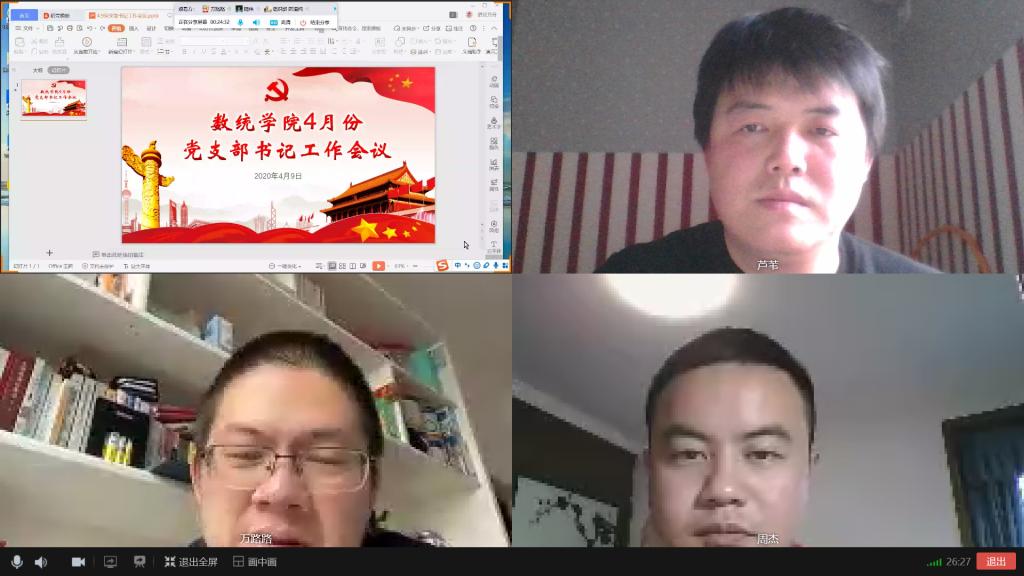 2020年4月9日下午,公司召开4月份员工党支部书记线上视频会议,此次会议由公司党委副书记陆伟主持,公司党委书记万路路、组织员周杰老师出席此次会议,院组织部成员和各员工党支部书记参加会议。