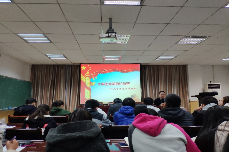 2018年11月7日晚七点,beat365官网登录中文团委书记周杰于本院201为大家讲解主题为“老员工党员的忙与茫”的党课,本院的入党积极分子参与学习。