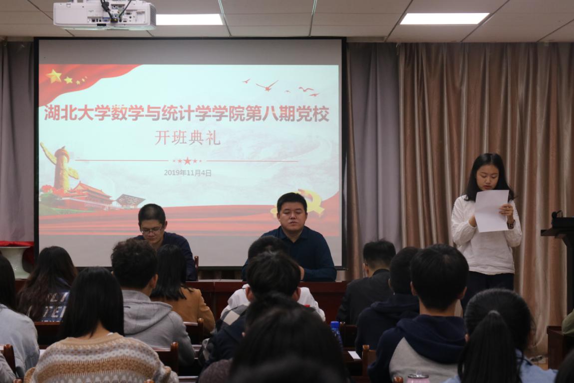 beat365官网登录中文员工团委副书记侯文慧宣读党校培训纪律要求。数学与应用数学2018级李天琪同学代表入党积极分子讲话。