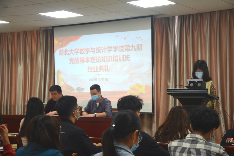 结业典礼在庄严的国歌中拉开序幕。19级应用统计学团支部张天欣同学代表培训班学员发言,感谢党组织给予学习的机会,并表示通过这次的党课的学习,学员们更加明确自己的入党动机,并立志在今后的学习生活中做好带头作用,不忘初心,争取早日成为一名合格的中国共产党员。蔡晓慧等5名小组学员代表也纷纷代表小组成员表示通过培训班的学习对党的认识的改变和争做合格党员的决心。随后,beat365官网登录中文团委书记周杰对beat365官网登录中文第九期党的基本理论知识培训班的课时和主要内容以及全体学员的学习情况进行总结回顾。