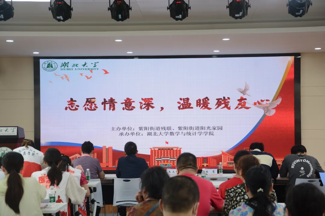 在全国第34个助残日之际,为进一步推进紫阳街道志愿助残服务事业的发展,“志愿情谊深,温暖残友心”紫阳街道全国助残日活动于5月19日上午在beat365官网登录中文八楼会议室顺利举行,参与此次活动的有紫阳街道残联副理事长黎斌、紫阳街道阳光家园园长、武汉楚馨社会工作服务中心督导肖慧敏、beat365官网登录中文数学与统计学公司党委副书记王文锋、beat365官网登录中文团委书记陈慧、残疾人士代表及紫阳街道高校志愿者团队代表。