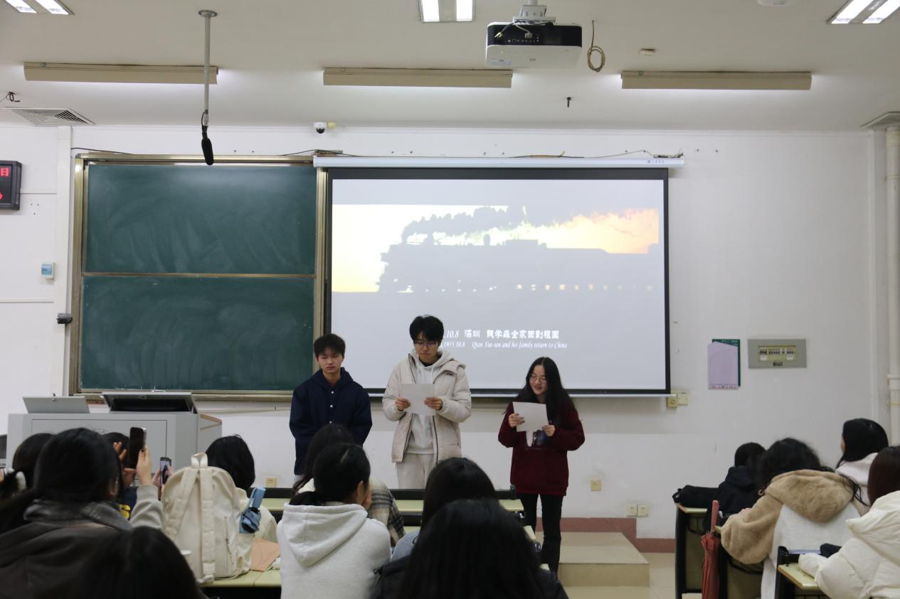 本次示范团日活动还邀请了三名同学进行情景剧的扮演,并配合视频播放,通过趣味的演出,深入了解了钱学森等科学家的卓越贡献,直观地感受到了科创精神的力量。在这场跨越时空的情景剧中,通过一次奇妙的穿越之旅,共同探讨了人类对科技创新的无尽仰慕与不懈追求。