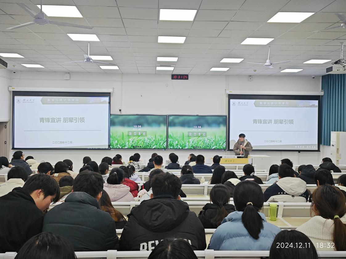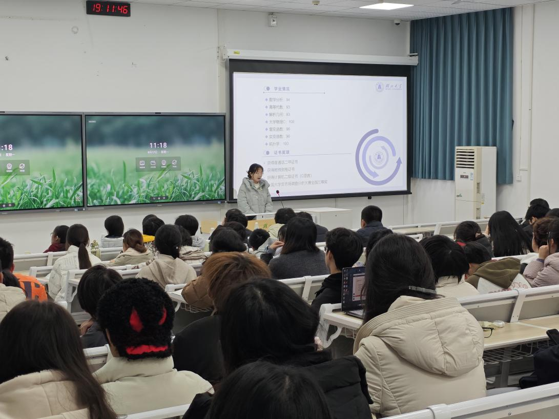 12月11日晚,公司在阳逻校区B312教室举办朋辈交流分享活动,邀请青锋宣讲团优秀成员代表分享了学习经验,并开展学风建设座谈会。公司党委副书记王文锋、辅导员杜强、易志奇,青锋宣讲团成员代表以及2024级数学类新生参与此次活动,会议由易志奇主持。