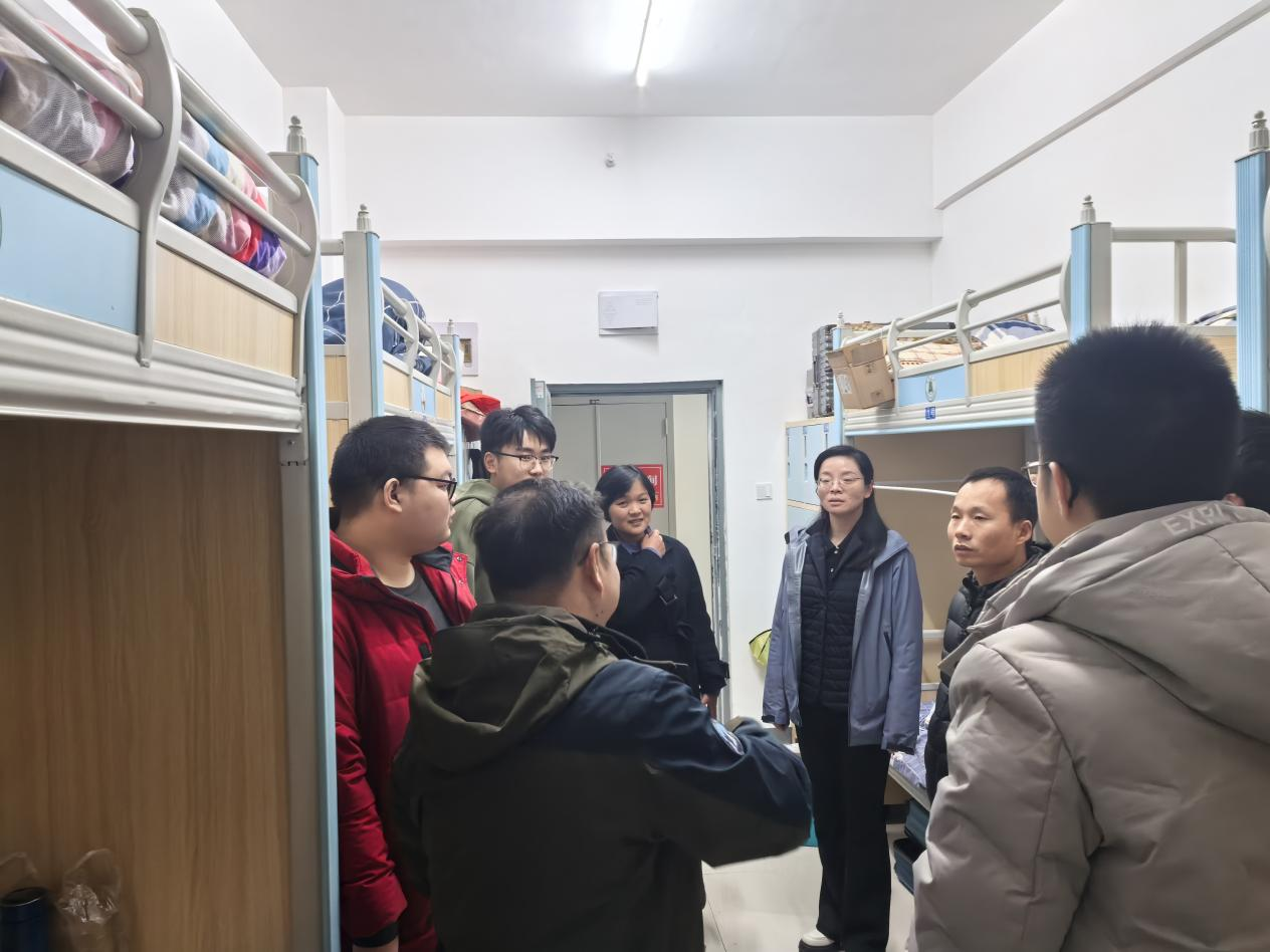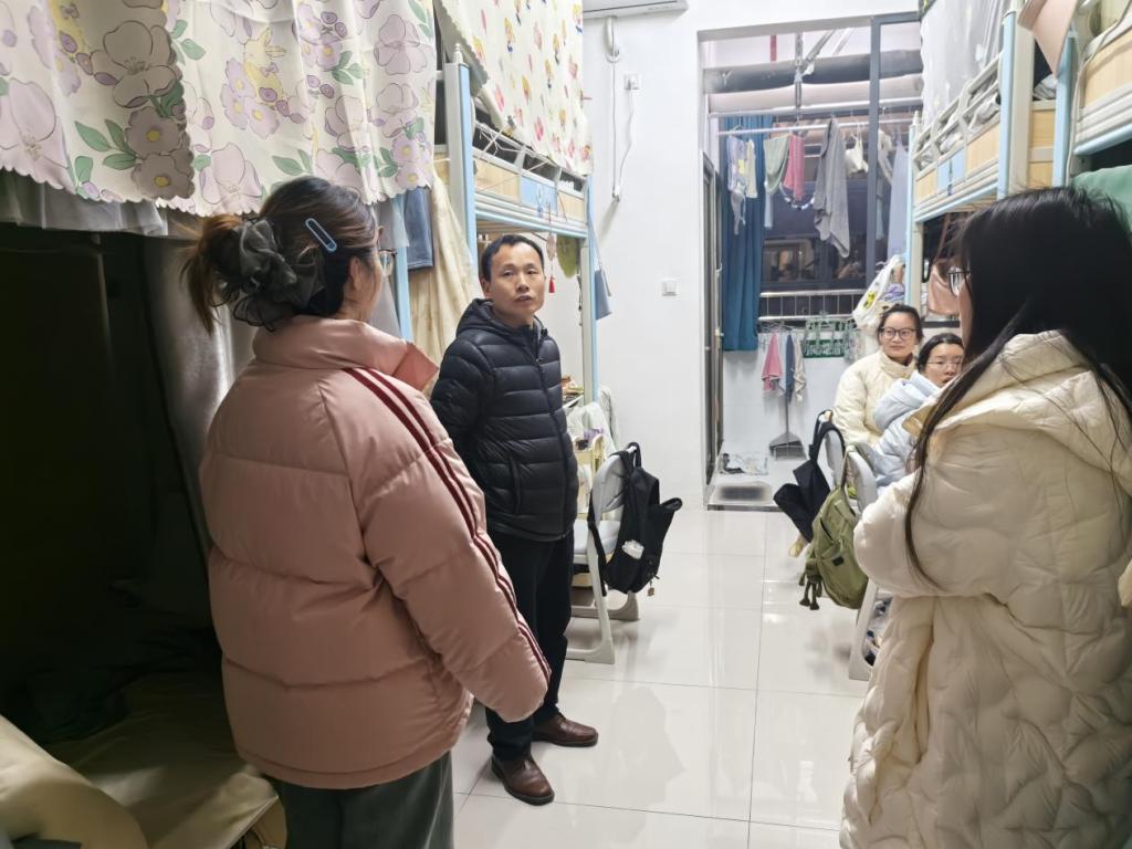 新学期开学第一天,为切实了解员工返校情况和思想动态,2月16日晚,公司党委书记黄江英带领公司领导班子、全体班主任、辅导员等一行深入员工宿舍,开展新学期宿舍走访慰问活动。