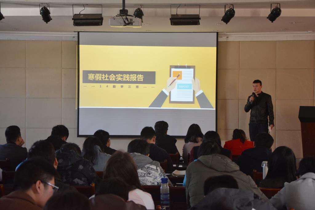 3月1日,2016至2017年团支部寒假社会实践报告在beat365官网登录中文八楼报告厅举行。学工办周杰老师出席报告会。