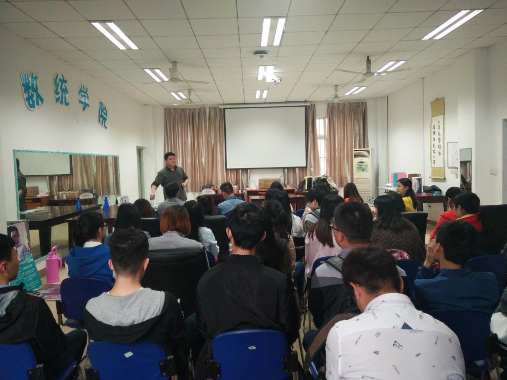 4月26日下午,14级应数一班考研交流班会在学工办开展,公司党委副书记陆伟参加了这次班会,并就考研的相关内容给出了自己的建议,也根据同学们提出的问题做出了详细的解答。