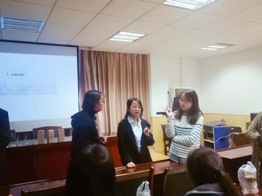 本次心理班会分为5个环节:趣味心理小测试;了解人际交往的主旨所在;老员工人际交往常见问题;人际交往不当原因分析;改善老员工人际交往的途径。在讲解期间穿插小游戏,让所有同学都能积极参与其中。击鼓传花小游戏更将班会气氛推向高潮,被选中的同学上台分享自己近期开心或是烦恼的事情,在吐槽中释放压力。