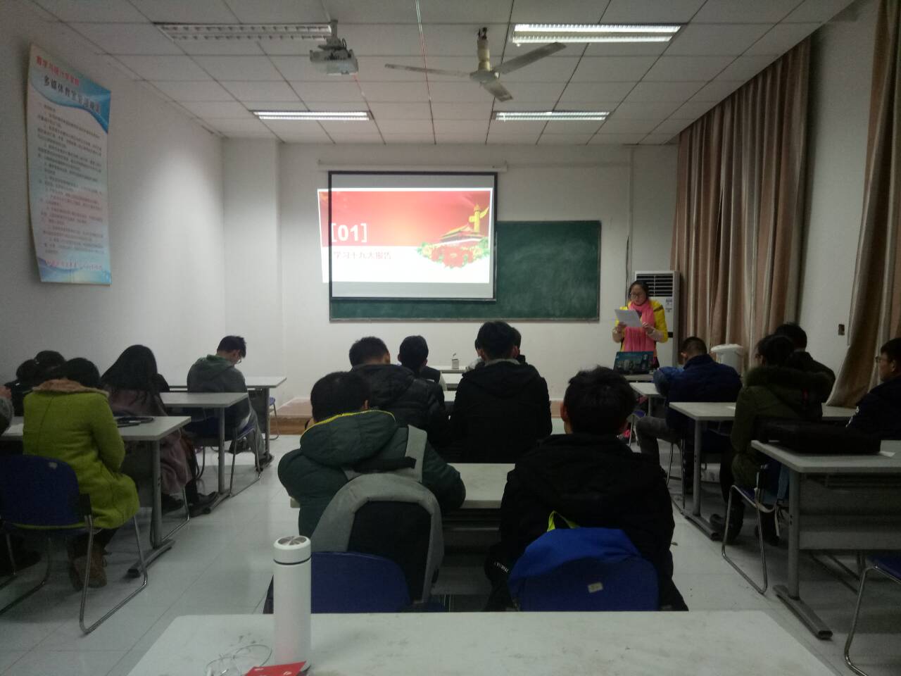 本次团日活动,带领团支部成员深入了解、学习了十九大精神,培养团支部成员合作共赢意识,也通过双语学习的游戏,积累了英语单词,迎接下周的四级考。期待同学们在平日得学习生活中也要好好落实十九大精神,做好新一代的接班人。
