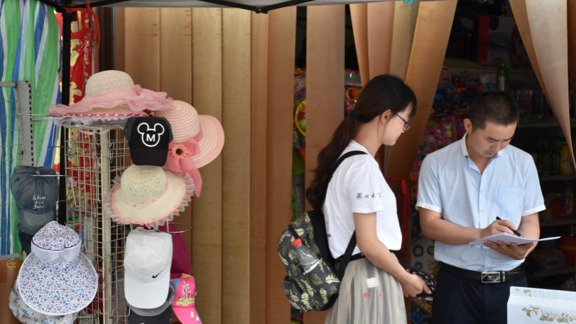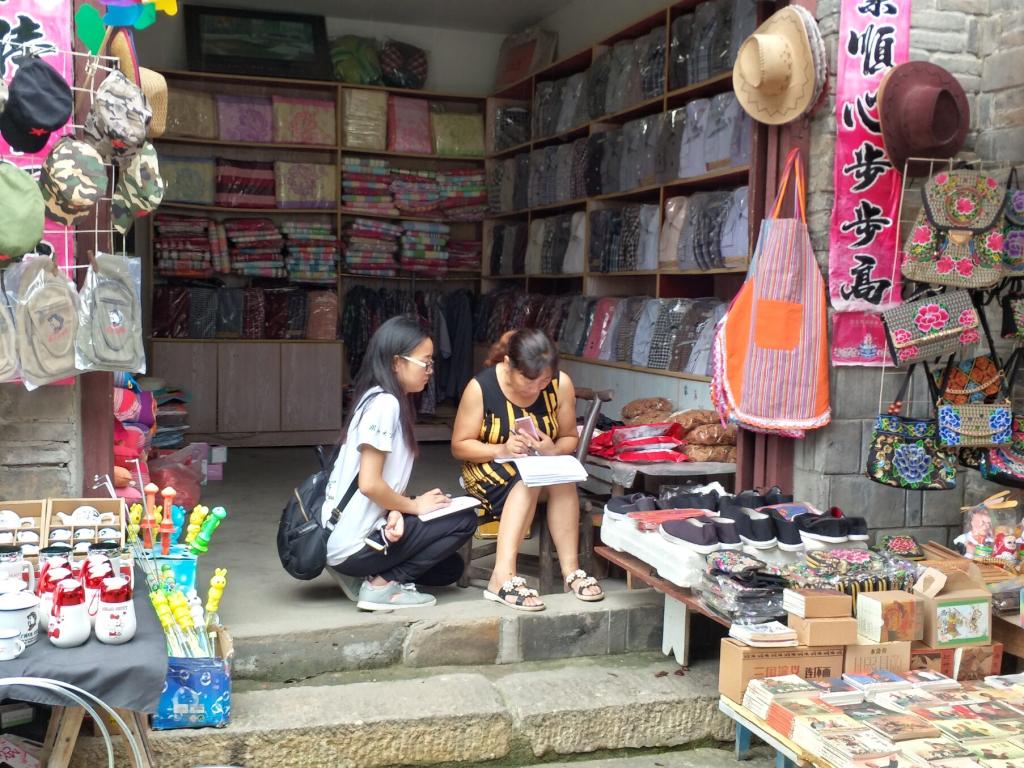 团队成员向七里坪镇居民发放问卷(摄影 戴慧茹)