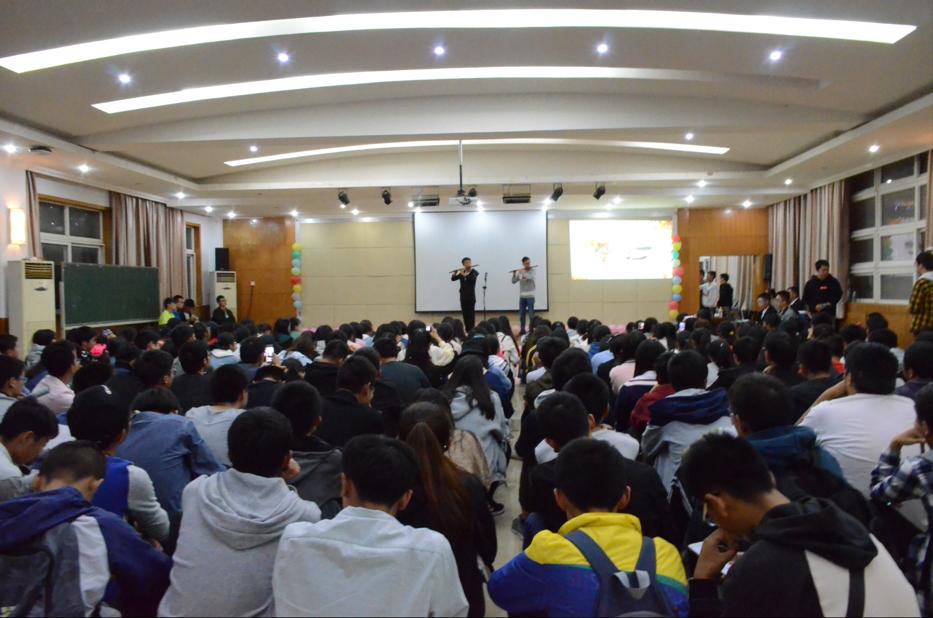 随着主持人一声“现在宣布第五届迎新晚会正式开始”迎新晚会拉开了帷幕。晚会中的小品、京剧、笛箫合奏、合唱等引的现场同学掌声不断,现场氛围更是热闹。
