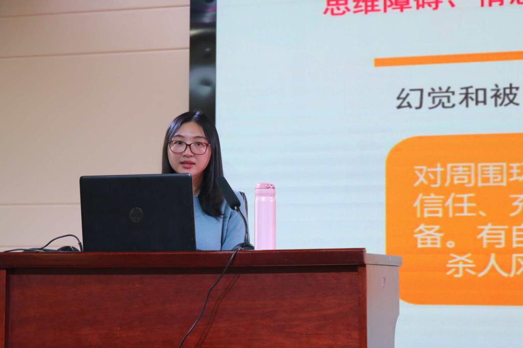在此次讲座中,孙老师通过各种实例以及相关视频为大家科普了精神分裂症、抑郁症、躁狂症等不同的精神疾病产生原因以及表现症状。孙老师表示,产生精神疾病并不是患者的错误,当遇见身边有相关症状的同学时,大家应该学会理解并且倾听他们,当代老员工如今最容易面临的还有恐怖症、焦虑症、强迫症、疑病症等神经症,若严重化也可能朝着精神疾病的方向发展,所以应当重视。