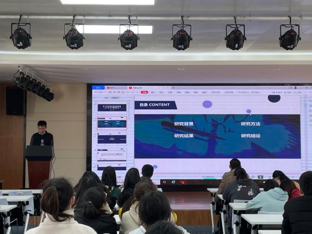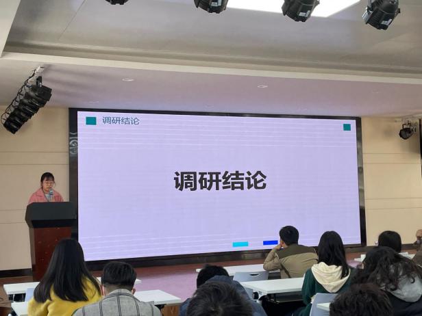 第二组同学是实践类题材,主讲人李婕讲述了我国大中城市0-3岁婴幼儿托育服务供需研究。彭江涛教授对他们的结果提出了结果有无依据、结论是否可靠以及问卷是否全部有效等疑问;王晓娟老师建议团队ppt提出应该重新规划,减少文字。
