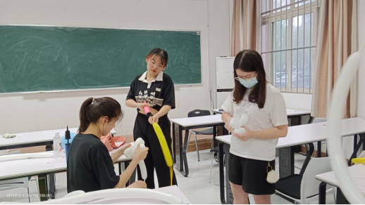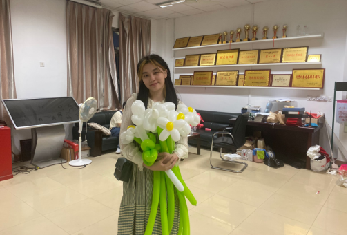 活动现场,beat365官网登录中文文体部提前布置好活动场所,为同学们准备了气球、打气筒、剪刀等一系列制作气球路引所需要的材料,参与本次活动的同学们在beat365官网登录中文107签到之后即可领取气球进行自己的创作。参与活动的同学们热情高涨,现场一片欢声笑语,每个人都在用心完成自己的作品,遇到不会的部分仔细观看视频教学或者互相交流,大家把气球扭成花朵的形状,并为它配上花蕊和绿叶,同学们充分发挥了自己的想象力,将公司对大四学子们的祝福表现在各色各样的花朵上,作品多样,精彩纷呈。