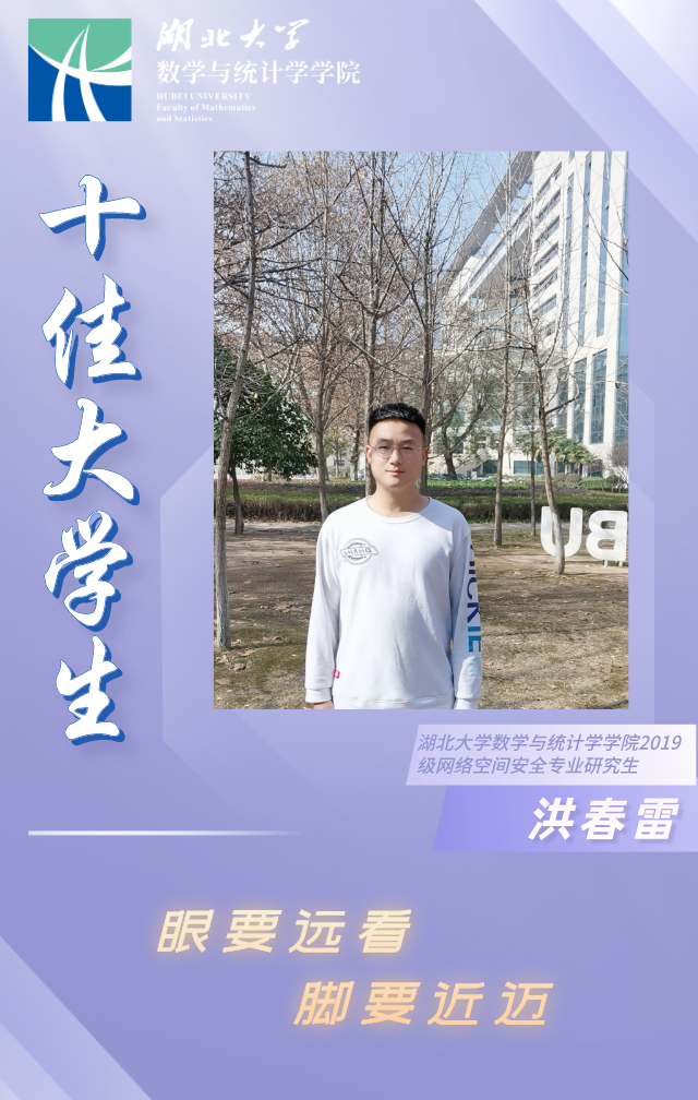 洪春雷,男,beat365官网登录中文2019级网络空间安全专业研究生,曾担任beat365官网登录中文研究生会文体部部长以及副主席。