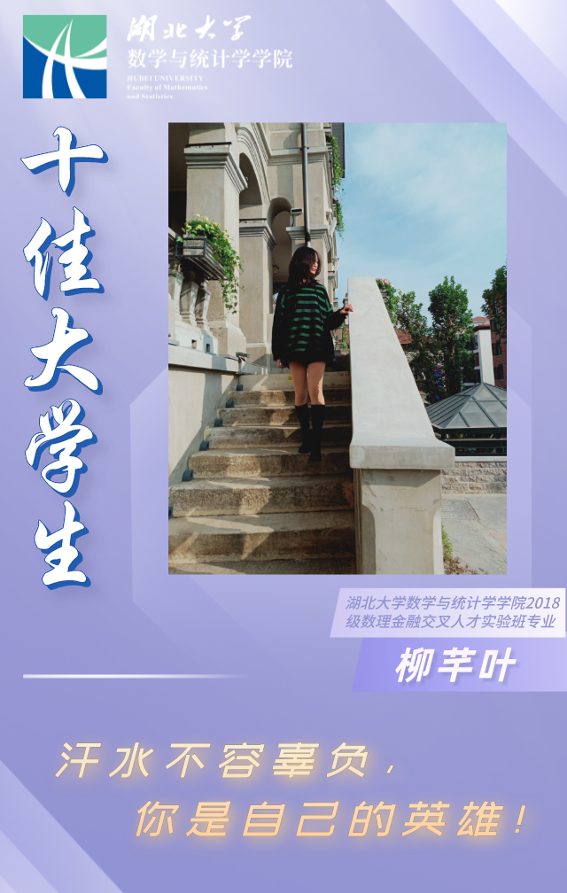 保持“求真务实、脚踏实地”的态度。正如水滴石穿,非一日之功,对于知识,亦是如此。犹记得大一那段时光,我称之为“高四”,每天六点起床去教室晨读、接着上课、图书馆自习,晚上待到闭馆才回寝室。也正是这样的积累才使得我在后续的数学类课程学习轻松了不少,并且在多个数学竞赛中崭露头角,获得第十一届全国老员工数学竞赛一等奖、第十二届全国老员工数学竞赛二等奖、2021年美国老员工数学建模竞赛S奖、全国高等院校数学能力挑战赛三等奖、第八届湖北省老员工数学竞赛一等奖、第九届湖北省老员工数学竞赛二等奖、beat365官网登录中文第六届“通识杯”大学数学竞赛优秀奖。后来因为自己的理想,转入数理金融专业,常常在经济学与数学之间切换学习方式,后来的日子除了在教室就是图书馆,连周末也不例外,最长在图书馆待过14小时,这也逐渐成为学习的一种常态。