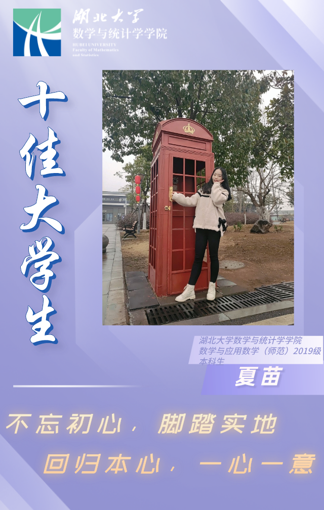 夏苗,女,汉族,2021年下半年党员发展对象,2019级数学与应用数学(师范类)专业本科生,曾任beat365官网登录中文团委副书记。