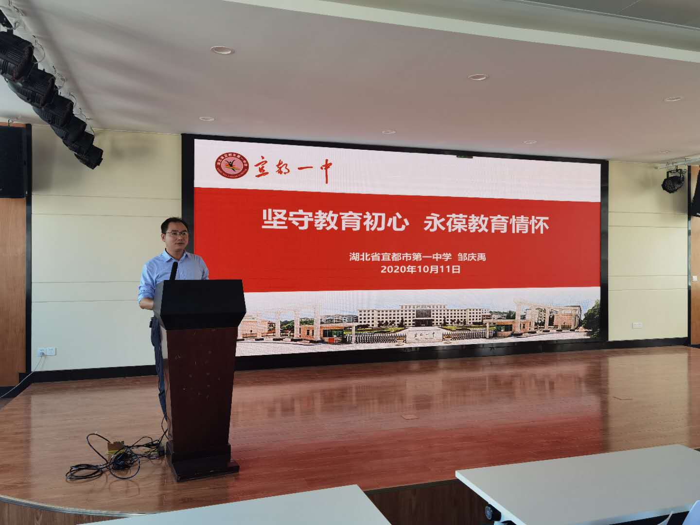 2020年10月11日下午,公司00级员工、宜都一中副董事长邹庆禹老师应beat365官网登录中文beat365官网登录中文邀请,在院八楼报告厅为18、19级数学师范生开展题为《坚守教育初心,永葆教育情怀》的讲座。本次讲座由公司党委副书记陆伟主持。