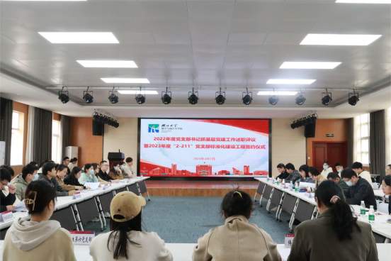 3月7日,beat365官网登录中文2022年度党支部书记抓基层党建工作述职评议暨2023年度“2-211”党支部标准化建设工程签约仪式在公司8楼报告厅举行。院党委书记周霞、党委副书记何肖、党委委员、党支部书记及师生党员代表参加活动。