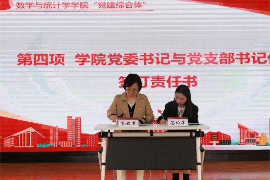 2023年度“2-211”党支部标准化建设工程签约仪式中,公司党委书记周霞分别与教师党支部书记代表刘展、员工党支部书记代表侯文慧签订责任书。