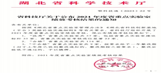 近日,湖北省科学技术厅印发了《省科技厅关于公布2021年度省重点实验室绩效考核结果的通知》(鄂科技通【2023】22号),公布了省重点实验室2021年度绩效考核结果。公司“应用数学湖北省重点实验室”获得“优秀”(建设标杆)等次。据悉参加本次考核的实验室全省共182家,“优秀”57家(其中建设标杆35家,进位显著22家),“合格”116家,“不合格”9家。这是自2016年以来连续6年的绩效考核中,该实验室获得的第4次“优秀”,另有2次“良好”。
