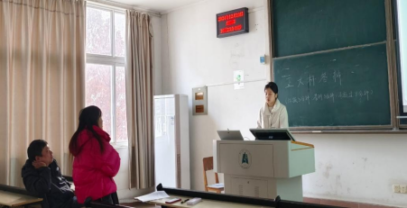 答辩现场十分紧张而热烈,同学们通过精心制作的PPT,详细阐述了自己的研究选题、方法、结果及创新点,指导老师们以认真、严谨的态度提出选题中存在的疑问,并提出针对性的修改意见和建议。