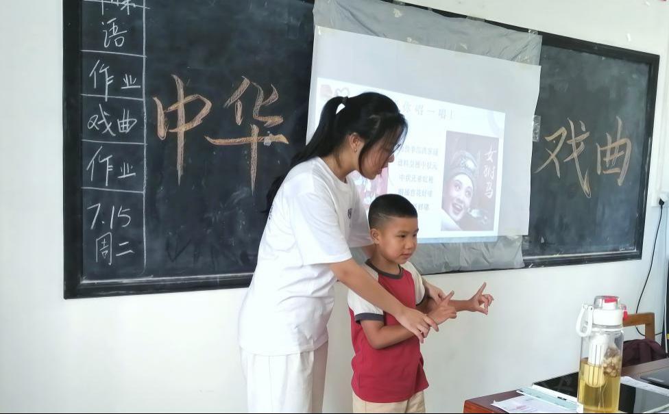 (通讯员:刘孜妍、陈奕)为深入贯彻习近平总书记关于传承弘扬中华优秀传统文化的重要指示精神,7月15日下午,beat365官网登录中文“小书童”支教团在通山县隐水村暑期“爱心托管班”开展了一堂别开生面的中华戏曲文化课,志愿者通过丰富多彩的活动带领同学们走近中国传统戏曲文化,在寓教于乐中播撒文化传承的种子。