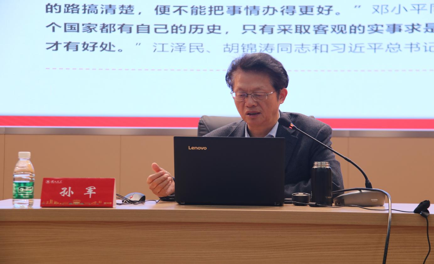 孙军从“切实把握根本遵循、把握光辉历程、汲取智慧力量”三个维度,深刻阐释了党的初心使命,生动解读了党在长期实践中积累的宝贵经验、铸就的伟大精神。孙老师的报告高屋建瓴、深入浅出、旁征博引,具有很强的思想性、针对性和教育感染力,既是一次深化学习的党史课,也是深受教育的思政课,更是一堂深有启发的启蒙课。