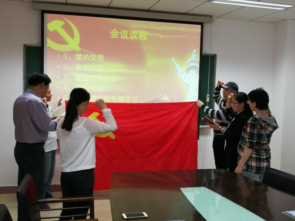 党日活动开始后,大家首先交纳了5月份的党费,接着在支部书记李胜华的带领下大家面对党旗庄严宣誓,重温了入党誓词;随后支部相继开展了集体诵读党章,学习十八届六中全会精神等相关教育活动,活动气氛庄重肃穆,取得了良好的效果。