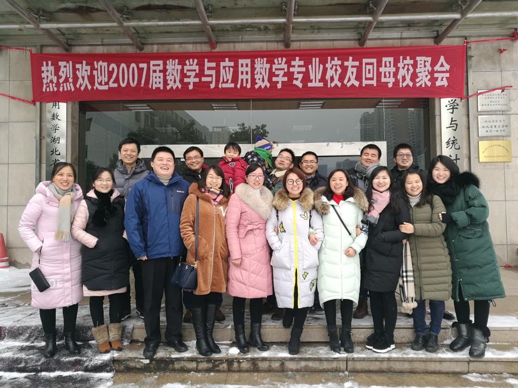 2018年1月27日,正值武汉大雪纷飞,天空纷纷扬扬飘落着雪花,也浇不灭员工返校的热情。公司2007届数学与应用数学专业(2)班员工在毕业10周年之际,再次相聚母校,重温青春时光,共忆美好岁月。