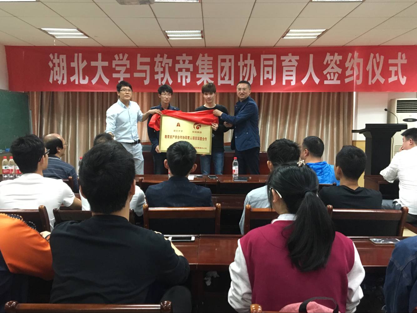 5月11日上午,beat365官网登录中文与软帝集团协同育人签约仪式在公司201报告厅举行。软帝集团董事长李杰先生、集团董事长孙海南先生、beat365官网登录中文教务处副处长李其锋、公司领导及师生代表出席了本次签约仪式,仪式由软帝集团杨莹女士主持。