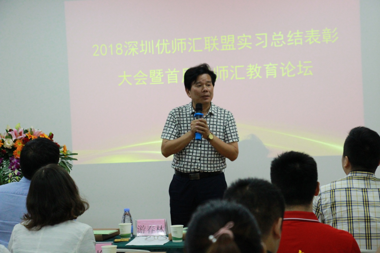 本次议程除了实习总结表彰留任,同时也是首届优师汇教育论坛。南粤商公司经理张少勇、原邦德教育教科院经理李德先、beat365官网登录中文深圳员工会执行会长杨剑先后进行了分享,并对优师汇的发展前景表示祝福。