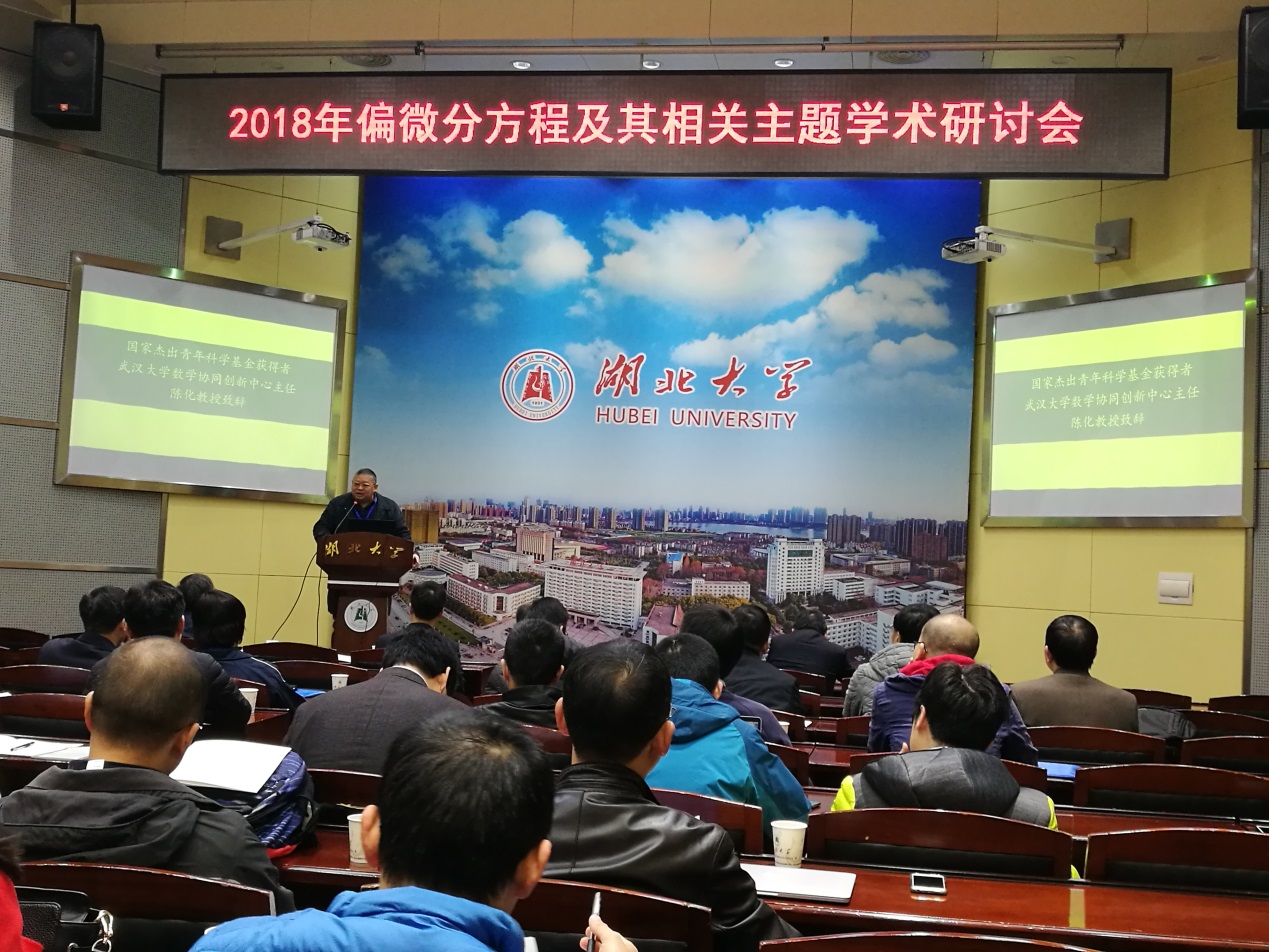 11月23至25日,由beat365官网登录中文、应用数学湖北省重点实验室联合主办的2018年偏微分方程及其相关主题学术研讨会在公司举行。