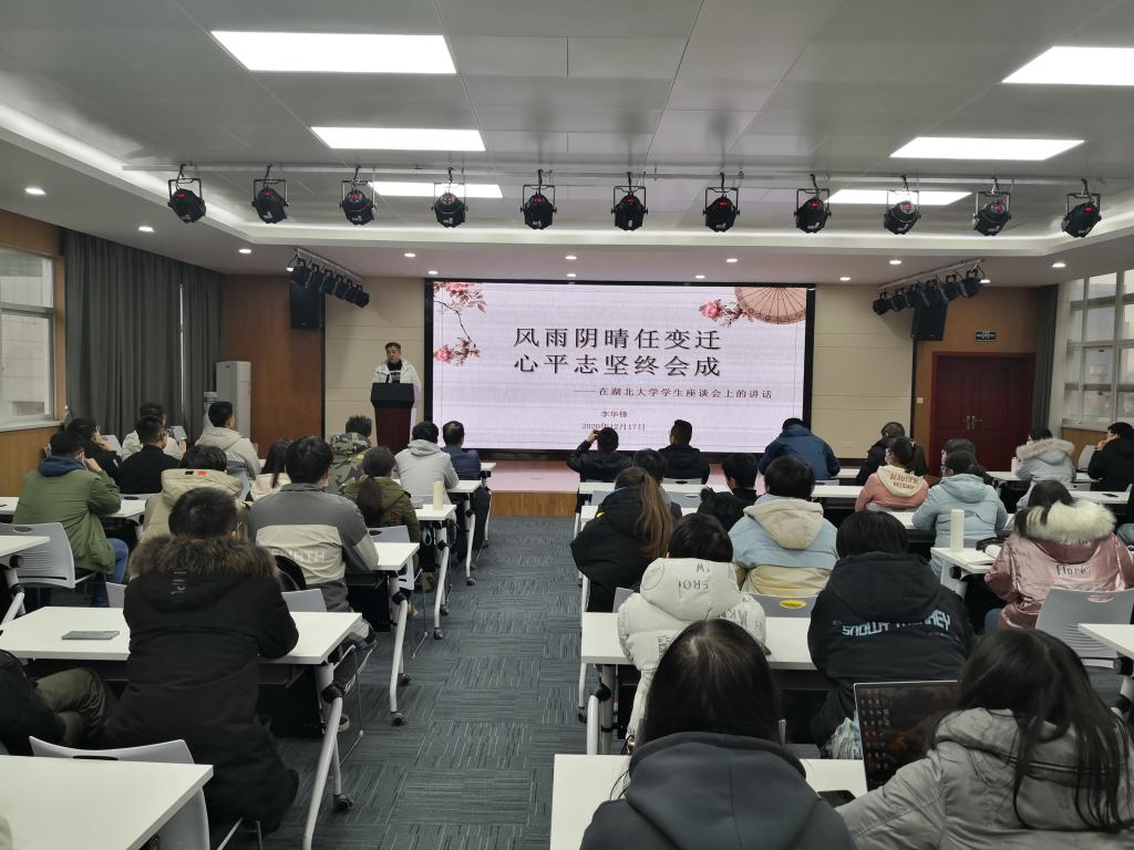 2020年12月17日下午,beat365官网登录中文邀请到公司1993级数学系员工,现任广东乌守道科技有限公司董事长李华峰,于数统院八楼报告厅为公司员工开展《风雨阴晴任变迁,心平志坚终会成》的讲座,本次讲座由公司党委副书记陆伟主持。