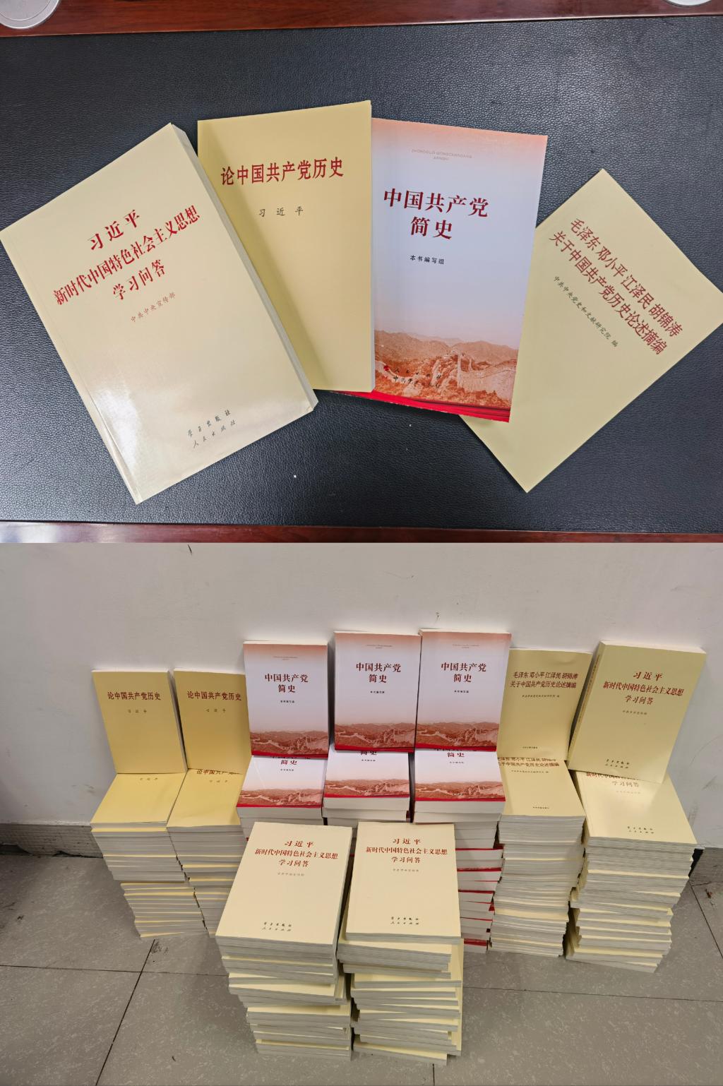公司党委征订的学习资料包含《中国共产党简史》《论中国共产党历史》《毛泽东 邓小平 江泽民 胡锦涛关于中国共产党历史论述摘编》和《习近平新时代中国特色社会主义思想学习问答》四部书籍,集中体现了中国共产党不断推进理论创新、进行理论创造的历史,是马克思主义中国化的进程。