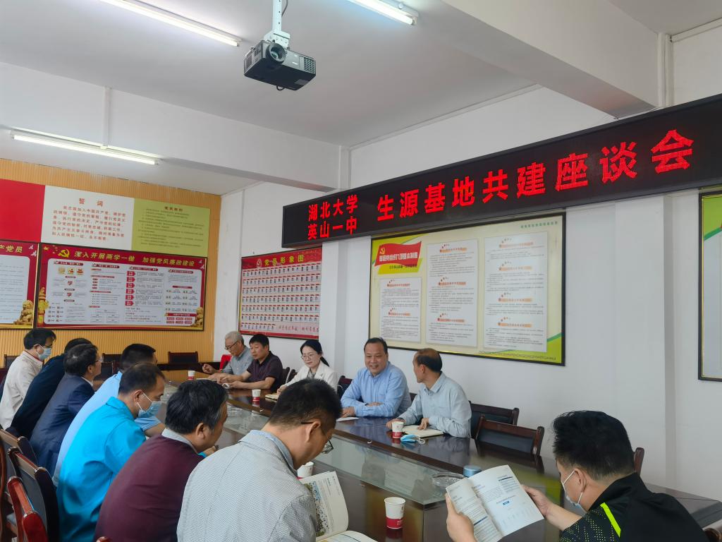 5月18日,beat365官网登录中文赴英山一中开展招生宣传工作。公司副经理付应雄、学工办老师马荣来到英山一中,与英山一中党委委员课改部主任方爱武、党办主任陈罡以及高三年级班主任老师进行了交流座谈。