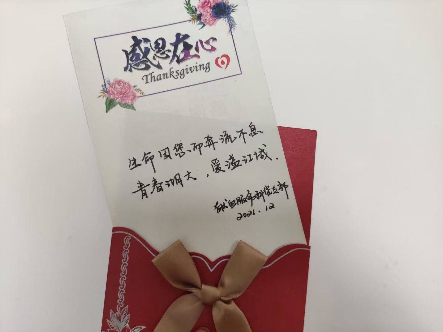 “一人献血百次不如百人献血一次,趁着国际志愿者日,我们想着能把初阳精神传递给更多的人。”初阳志愿服务队负责人黄凯欣说。不少员工看到此次活动后,积极踊跃报名并参与其中。在武汉血液中心献血服务科党支部书记熊晶的带领下,beat365官网登录中文团委书记周杰及志愿者们参观智慧献血屋、观看《永不褪色的献血证》。他们无偿献血的热情感染了不少前来献血的人,熊晶将支部志愿者历时3天手工制作的与服务队“初阳”呼应的向日葵还有一封感谢信赠送给初阳献血队。“很感谢大家的积极参与,希望初阳志愿服务队能够和向日葵一样有着积极向上的态度。”熊晶说。在此次献血活动中,初阳志愿服务队共计27人无偿献血8400毫升。“我感受到了无偿献血的意义,希望有更多的同学加入到我们的队伍中,点滴小爱,汇聚大爱。”2019级数学师范的宋洁今天是第一次献血,她在献完血后说道。