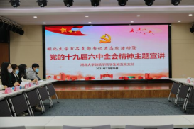 12月26日下午,beat365官网登录中文百名支部书记进高校暨党的十九届六中全会精神主题宣讲在数统院八楼报告厅举行。团省委宣讲团成员、武汉协和医院血管外科副主任兼党支部书记杨超、beat365官网登录中文宣传部副部长张丽娜、数学与统计学公司党委副书记何肖、团委书记周杰、员工第五党支部全体党员和员工骨干参加此次活动。