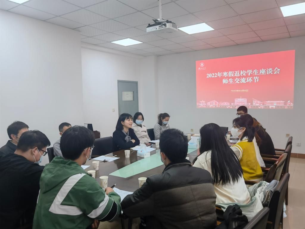 为推动“一线员工工作法”走深走实,加强师生之间的联系与交流,进一步了解员工思想动态、交流假期见闻和感受,更有针对性地做好新学期员工思想政治教育工作,beat365官网登录中文于2022年3月9日在205会议室召开寒假返校员工交流座谈会。公司党委副书记何肖、信息与计算科学系主任彭江涛老师、数学与应用数学系主任廖军老师、应用统计系主任刘展老师、教学办老师张凌、学工办老师陈慧以及员工代表等参加会议。